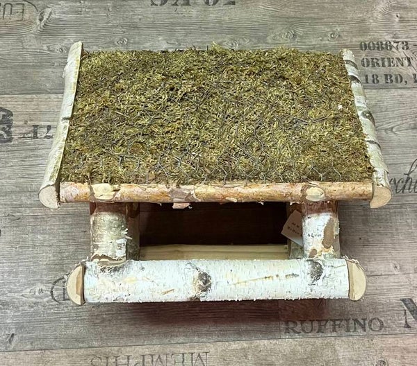 Material: Birkenholz mit Aufhängevorrichtung. Dach mit unbehandeltem Moos.
