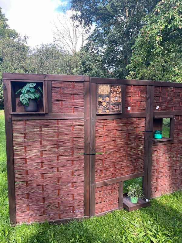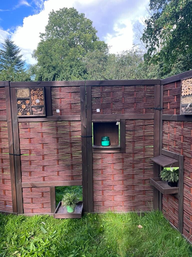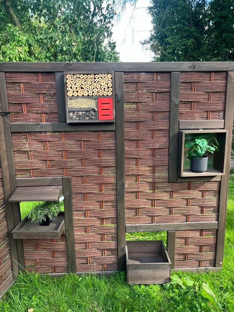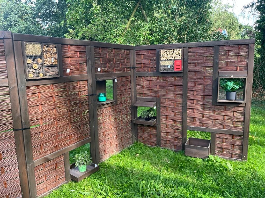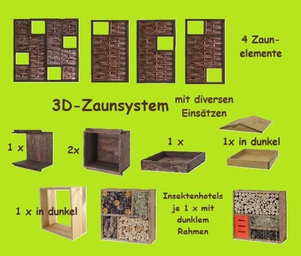 3-D Zaunsystem mit Einsätzen für Pflanzen oder Deko und zwei Insektenhotels
